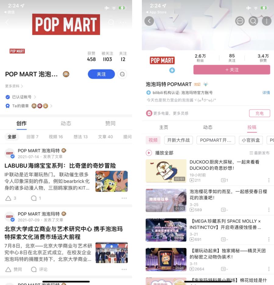 B站&知乎:这两个平台运营程度较低。B站目前粉丝数2.6万,主要内容为产品介绍、用户共创内容为主;知乎仅有1100粉丝,已经9个月没有运营。