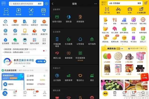 而这样的土壤,也萌生出了诸多所谓的“超级应用”。简单来说,就是用户在一个APP中就能完成诸如社交、支付、打车、订外卖、购买电影票、出行预订等服务。比如打开支付宝,就能够用滴滴打车、用饿了么点外卖、在口碑中购买团购套餐、飞猪中预订机票。
