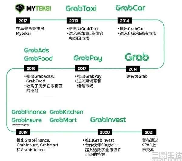 要知道,Grab对自己的评价也是“一个集所有功能于一身的平台”,其CEO兼联合创始人陈炳耀祖籍是福建泉州,是一位不折不扣的华人。自2016年正式更名为Grab后,这个此前以打车业务为主的平台也逐渐加入了支付工具GrabPay(2017)、推出广告业务和外卖业务GrabAds&Grabfood (2018),紧跟着还推出了GrabFinance、GrabInsure、GrabMart、GrabKitchen(2019)。不难发现,Grab方面同样也在出行、快递和金融服务三条主要业务线上,加入了食品配送、数字金融等服务,而这或许是受到了国内互联网产品的启发。