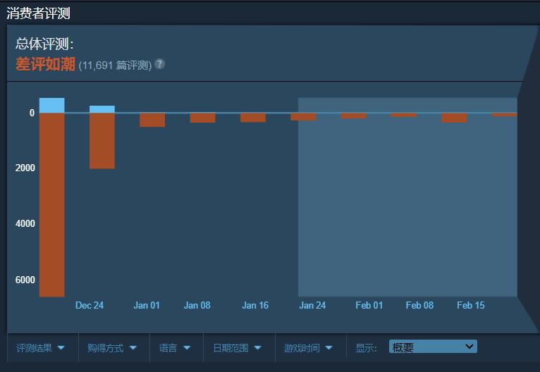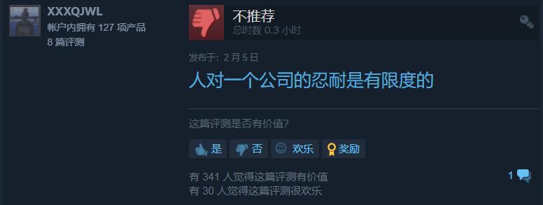 这么说吧,上一个好评率冲到个位数,且荣获差评如潮成就的游戏是2020年推出的“杀手13”,创造的历史纪录为总数546篇评价中有9%好评。