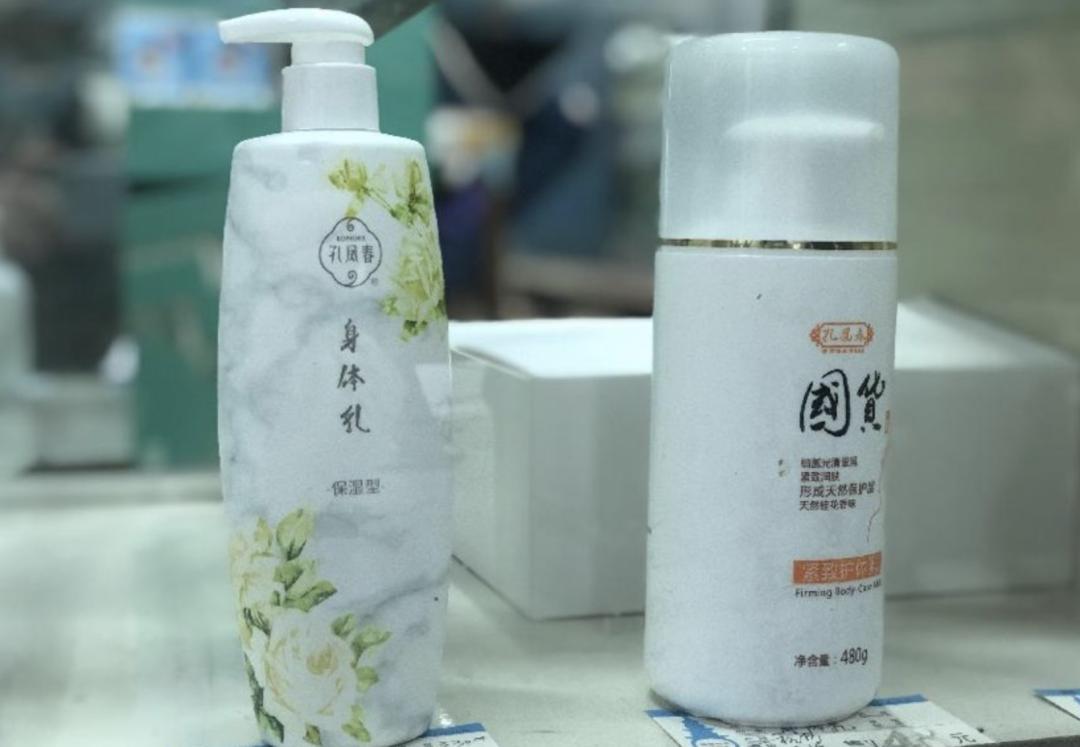 店内售卖的品牌大多都是老国货,和百年老店的气质浑然天成。进门便是护肤品的柜台,孔凤春和百雀羚两个百年品牌并列其中,是豫丰祥主推的两款护肤品。