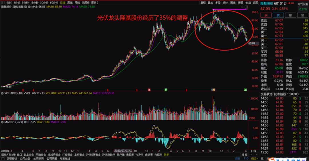 两者相比最为合适不过,都是那个时间段的时代弄潮者。而目前光伏的中期调整则类似于2018年白酒行情的中期调整过程。