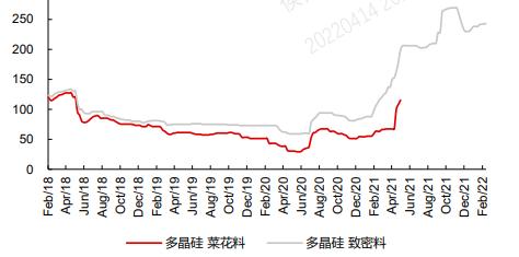2022年一季度硅料价格延续涨势,市场普遍认为硅料新增产能不及预期所致。