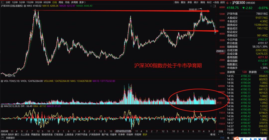 综上,笔者看来,目前就A股整体趋势而言,三大指数均处于牛市孕育阶段。创业板指数成为牛市先行者,这一阶段的调整是牛市孕育期的出清阶段,而非泡沫破灭阶段。