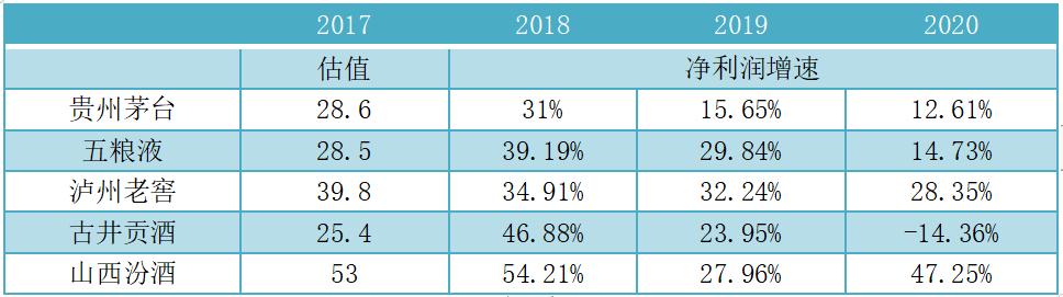 2018年中期调整之前,白酒行情的估值及未来的盈利增速: