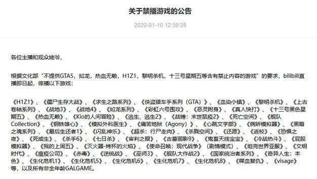 在此基础上,各平台2016年后都下发过相关“禁播”清单。B站以“年更”的方式不断补充“禁播游戏”的名单,至今数量已超60余款,其中大部分都是国外主机游戏。