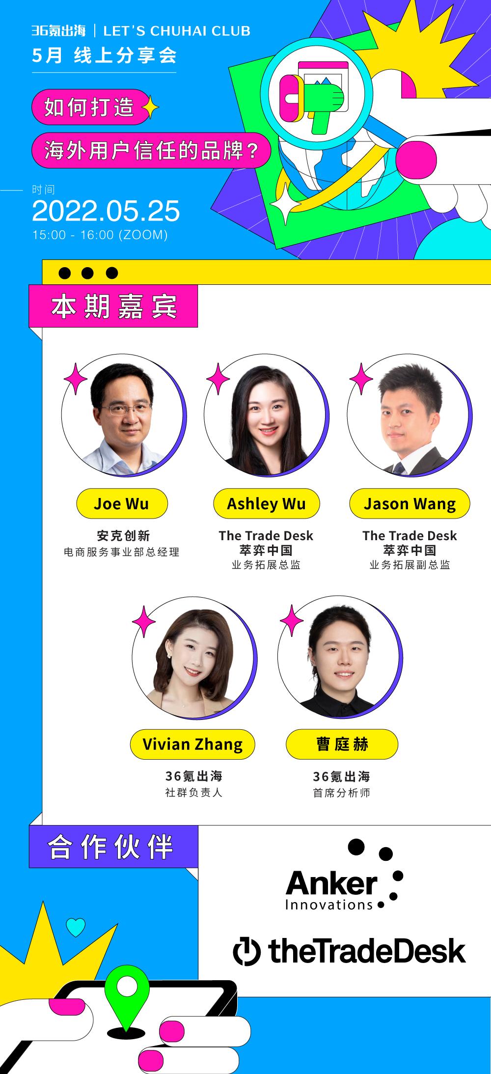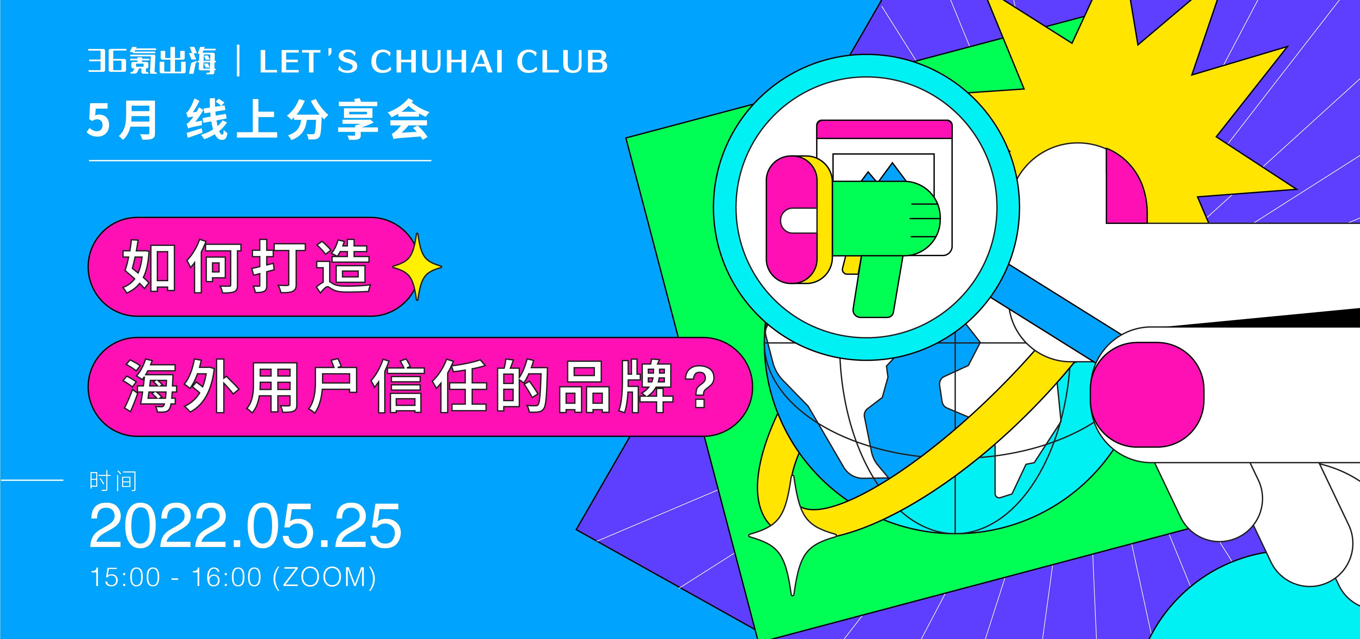 围绕出海企业如何打造海外用户信任的品牌这一主题,36氪出海旗下 LET'S CHUHAI CLUB 社群将在5月25日(星期三)下午3:00-4:00推出线上闭门分享会活动,并针对以下话题进行分享讨论: