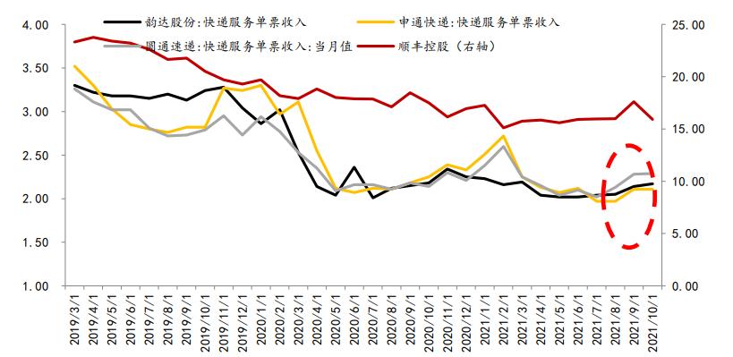 2021年4月,极兔快递入主中国市场,在义乌地区开始价格战,将单票收益压制每单1.4元以内,其他四通一达也纷纷下调单票金额来瓜分市场份额,这一段时间顺丰也迫不得已将单票金额维持在15.78元至16.53元这么一个相对较低的水平。