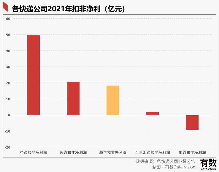 圆通和中通的扣非净利润分别增长33.04%和7.8%;申通快递营收维持在250亿左右,虽然公司公告2021年亏损9.43个亿,但主要是转运中心的资产减值所导致,而非经营出现问题。