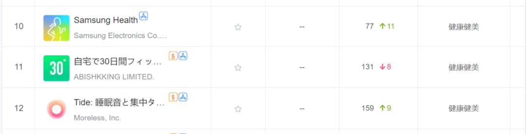 也正因如此,我们可以看到在日本健康健美类榜单上除了冥想类 App 外还有大量的睡眠追踪或专注于助眠的 App,其中也包括中国厂商的一些产品。