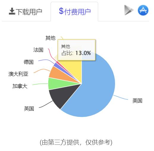 而全球最大的冥想 App 「Calm」的排名虽然仅次于「Meditopia」,但根据白鲸研究院抓取到的数据,日本的「Calm」付费用户很少,只能被归入 13% 的“其他国家和地区”部分中。