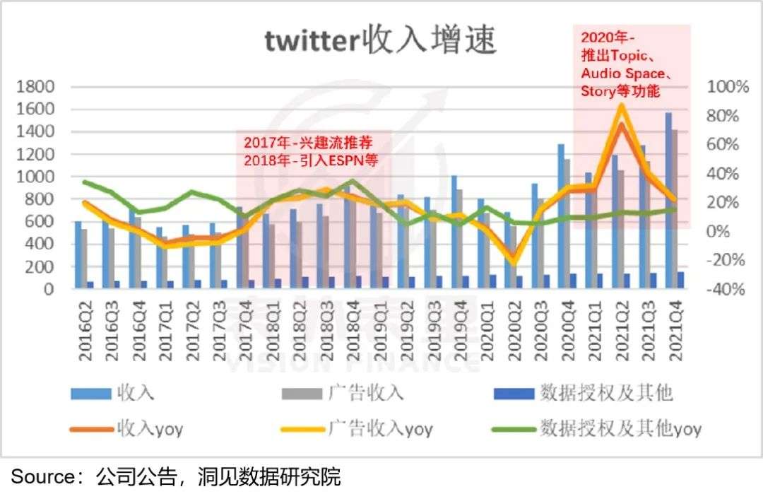 在短视频崛起,内容模式迭代的竞争环境下,Twitter从新闻功能属性构建起的路径依赖,厚积薄发,在用户基本盘和变现上确定性不断强化。