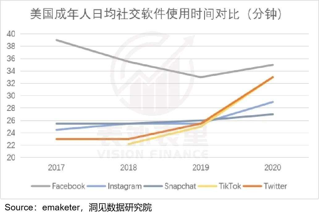 而与微博相比,同期的Twitter,用户时长却是拐头向上增长,和TikTok保持一致,粘性直逼Facebook。