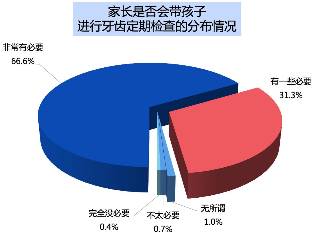 关注自身牙齿美观健康的家长对子女的牙齿关注程度同样很高,近7成的家长表示哪怕孩子的牙齿没有问题也非常有必要去看牙医定期做检查。