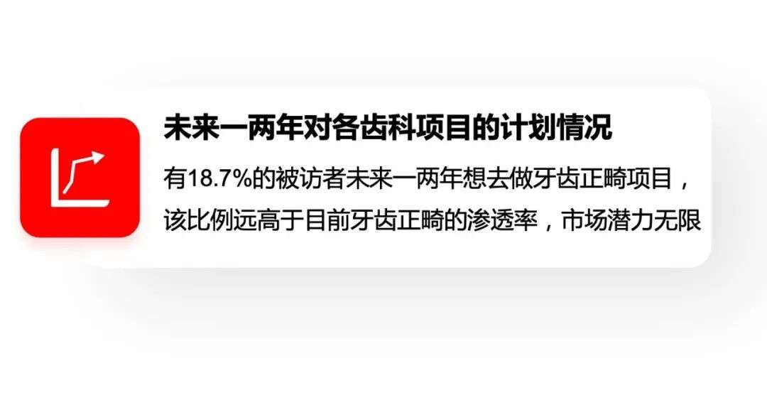牙齿不整齐的被访者中(59.4%),有31.5%的被访者表示自己未来1-2年有牙齿正畸的计划,该项目的“热门度”仅次于洗牙项目和较为刚需的牙齿修补项目;