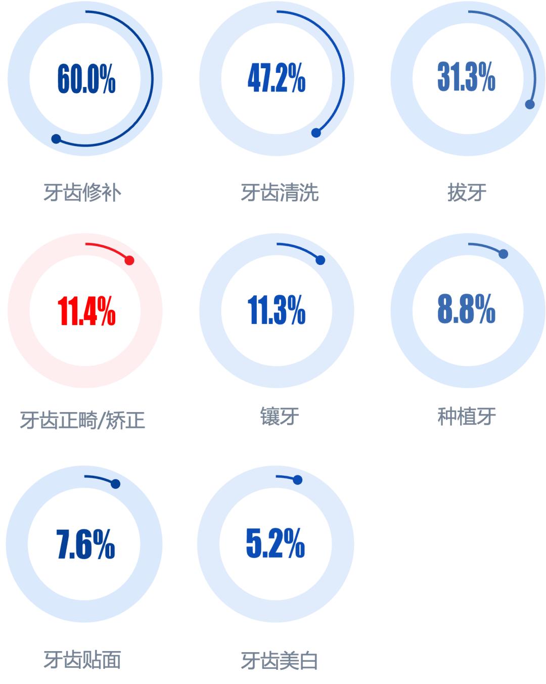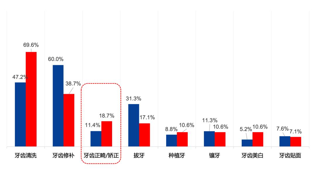 我国牙齿不齐的发病率较高(59.4%),但在口腔护齿市场中,正畸矫正项目的渗透率较低。