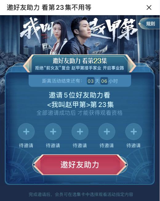 从优酷最新回应来看,“邀请好友助力”活动属实,但其强调仅限于(《我叫赵弟甲》)第23、24集,其他集数仍未推出相应的活动。