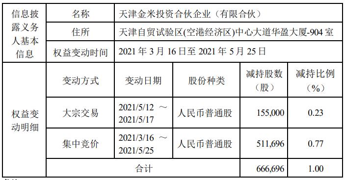 除了顺为资本,同样归属于雷军旗下的天津金米也在减持。