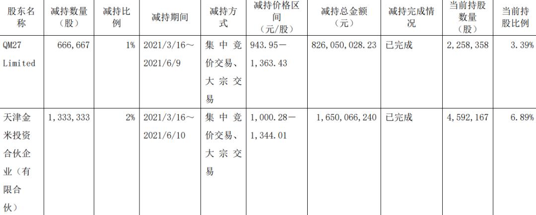 石头科技的首轮减持中,天津金米出售了133万股石头科技的股票,占总股本的2%,减持完成后持股比例为6.89%。