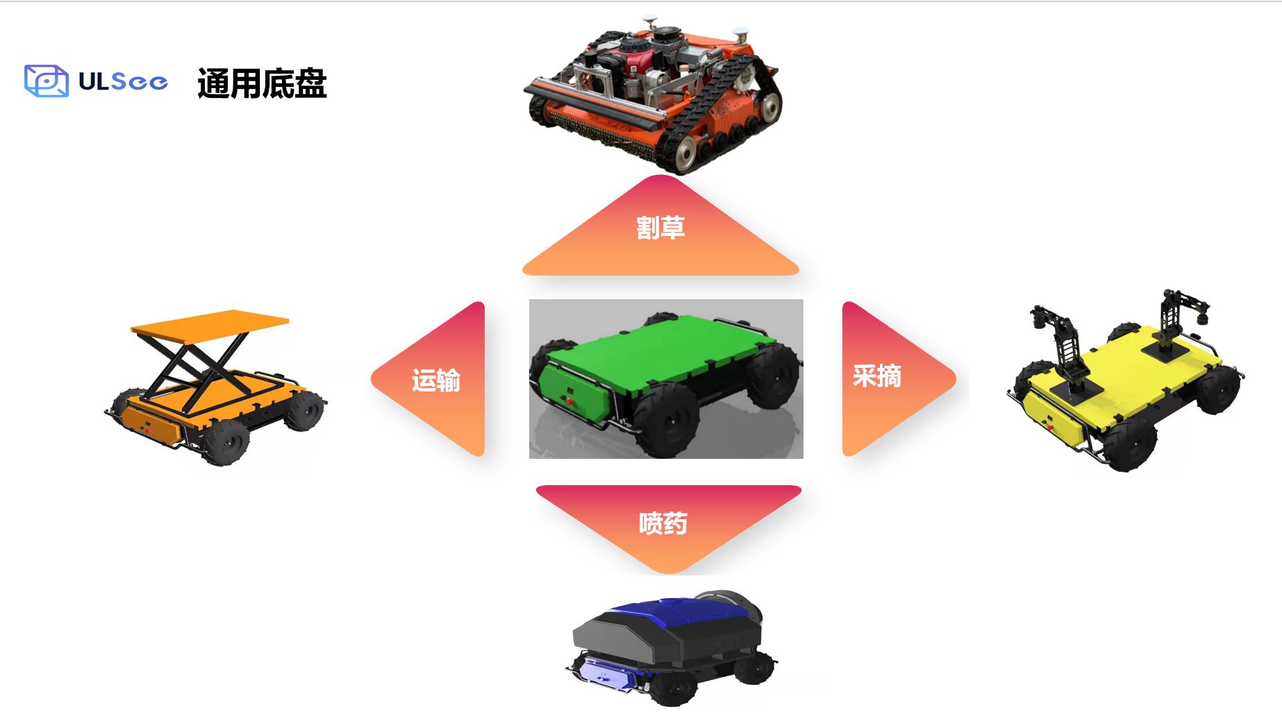 「ULsee」已经申请90件专利,获准52件。「ULsee」割草机器人产品因地制宜,在果园用导航系统;堤坝斜坡场景,用“地图+视觉+激光雷达”解决方案,采用履带式设计;在光伏场景,用“激光雷达+视觉”;在城市家用服务上,则采用“导航+视觉+雷达”的融合技术。据叶舟介绍,通过并购底盘公司,ULsee拥有“滑板式底盘”技术平台,将动力电池集中在底盘上,未来还可以灵活适配打药机、巡检机器人、运输平台等部件。