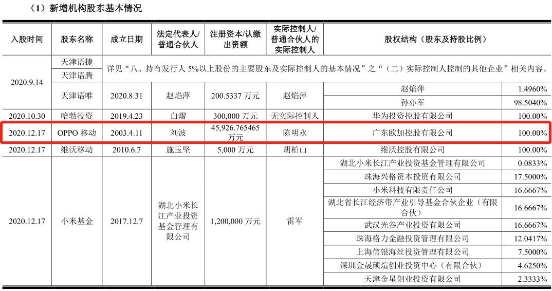 一部分是欧加控股旗下的OPPO移动和巡星投资(重庆)有限公司(下称「巡星投资」);