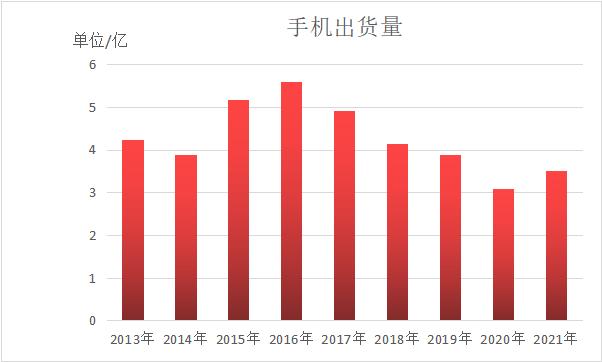 2016年之后,我国手机出货量连续四年下降,2020年后,5G技术带来一波换机窗口,出现了新的市场增量。根据中国通信院数据显示,2021年,国内市场手机总体出货量累计3.51 亿部,其中,5G 手机出货量 2.66 亿部,占同期手机出货量的 75.9%。同时,华为受制裁后,高端机市场出现空缺,这为OPPO这样的手机厂商提供了机会。