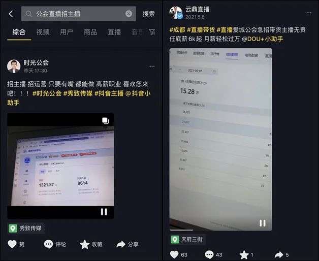 近期,抖音直播正在流行一种新的主播招募方式:公会老板开直播,教你怎么做主播。表面是培训,实则是招主播。