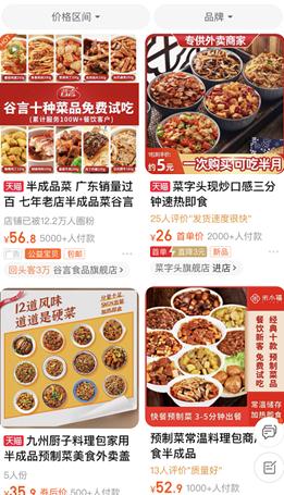 我们在电商平台上随意搜索,很容易发现,成品菜的价格一点也不比饭馆儿里的便宜。