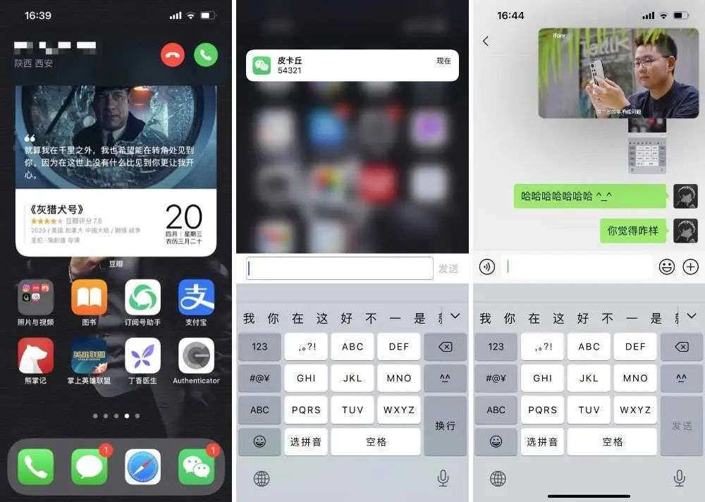 信息通知和电话功能也经过优化,此前来电话 iPhone 会自动进入全屏,现在则是以可交互的通知窗口,信息通知也是一样,下拉即可交互,微信等第三方应用也支持。