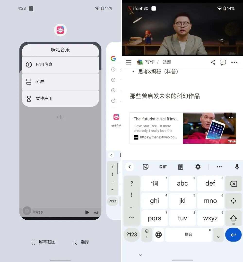 ▲ Android 分屏入口太深,视频会与输入键盘冲突