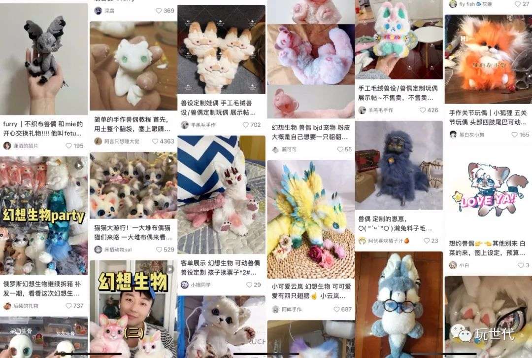 目前市面上出现了furry相关潮流玩具设计、文创产品,棉花娃娃也在演变出了兽设形态的玩偶,新的品类和风格支流亟待破土。
