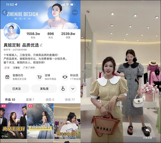 据卡思观察,坐拥1500万粉丝的服饰主播@真姐的直播间里,就会反复强调“真字标”服装的品质,而弹幕上老铁们对这一品牌服装的正向反馈又能激发更多围观老铁下单,从侧面也有助于真姐个人IP的粉丝沉淀和人设打造。