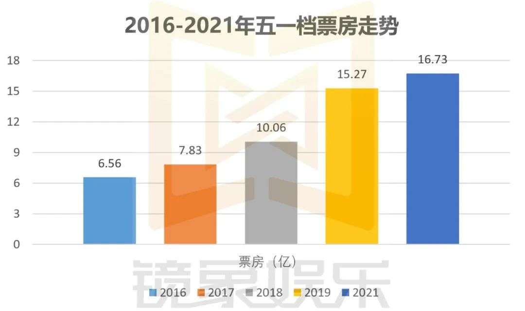 从近几年五一档的整体票房走势来看,档期票房逐年走高,尤其是在假期调至5天之后,五一档也随之成为中小档期中一个颇具爆发力的档期。