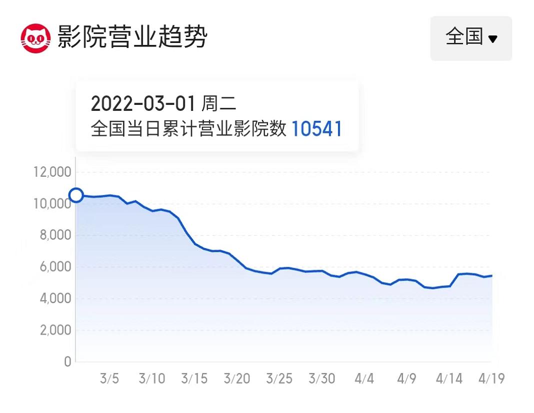 猫眼专业版数据显示,截至4月19日,全国影院营业率为45.34%,较昨日仅增长0.68%,日票房产出不足800万。并且,从影院营业趋势来看,自3月1日至今,全国营业的影院数量整体呈波动下降的态势,回升趋势并不明显。这也是掣肘定档影片铺开宣发的一个重要原因,宣发还是不宣发、撤档还是不撤档都成为行业如今面临的问题。