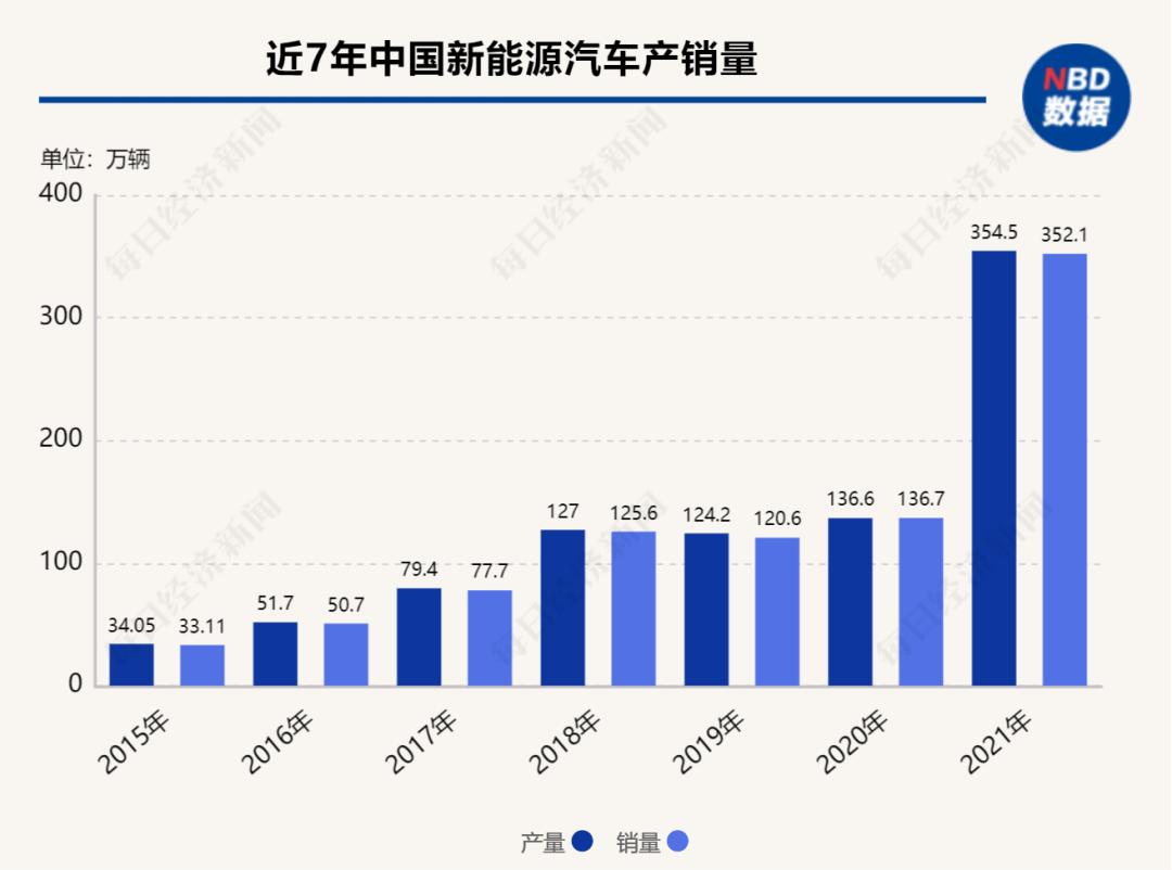 2021年,中国生产的电动汽车约占当年全球电动汽车产量的六成;而352.1万辆的销量,也超过当年全球总销量(约650万辆)的一半。