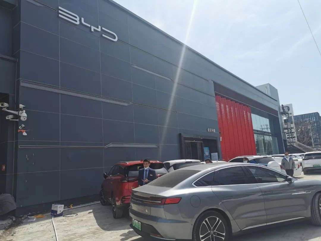 旁边销售新能源车的比亚迪店内,看车的人络绎不绝,印证了安林话语中新能源车受热捧的情景。