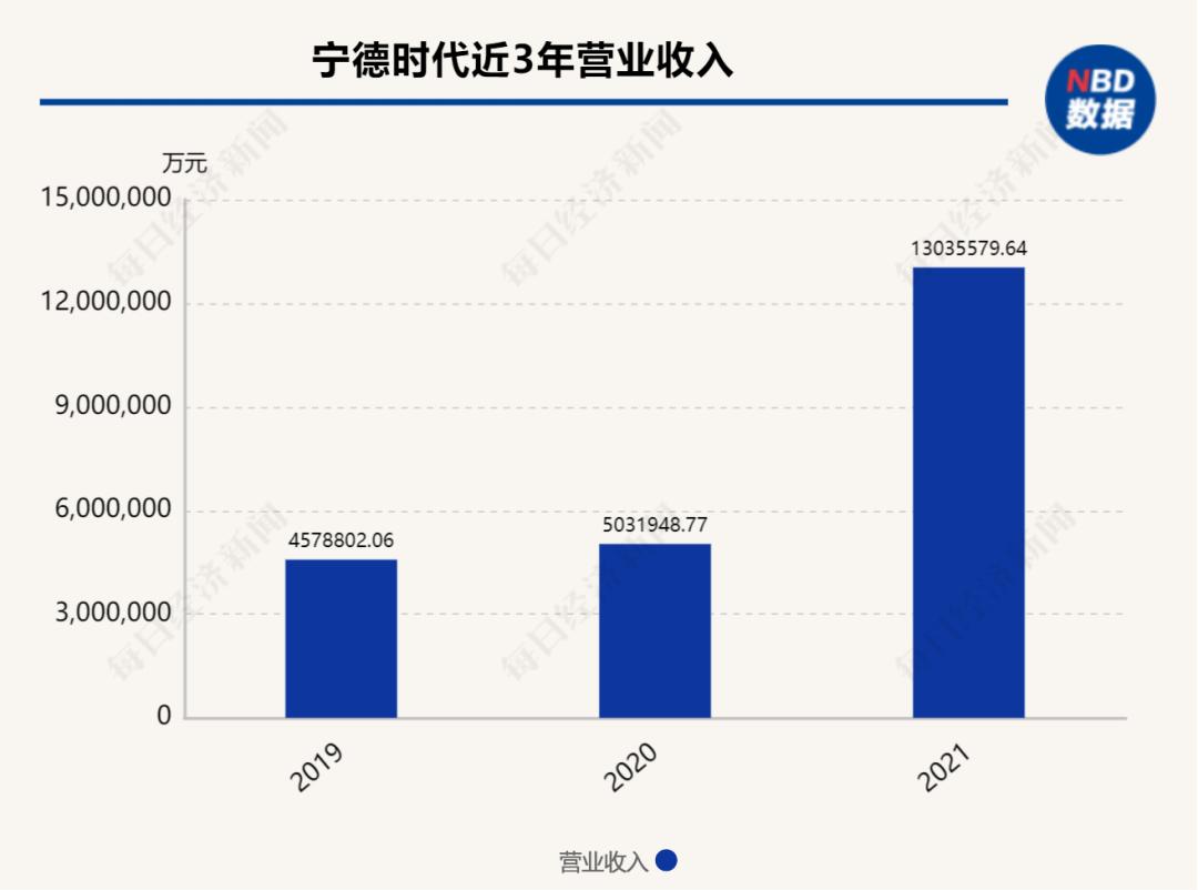 而仅仅1年之后,据宁德时代4月22日晚刚刚发布的2021年年度报告显示,当年实现营业收入约1303.56亿元,同比涨幅扩大至159.06%,归属于上市公司股东的净利润约159.31亿元,同比增长185.34%。动力电池系统销售系其主要收入来源,销售收入达 914.91亿元, 同比增长 132.06%。报告期内,公司深化了与特斯拉、现代、福特、戴姆勒、长城汽车、理想、蔚来等全球客户的长期战略合作。