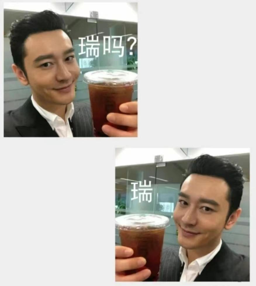 这组表情包,来源于一个小红书网友,这位网友的灵感,则来自于室友的一句“喝瑞幸吗”和一张黄晓明端着咖啡的表情。