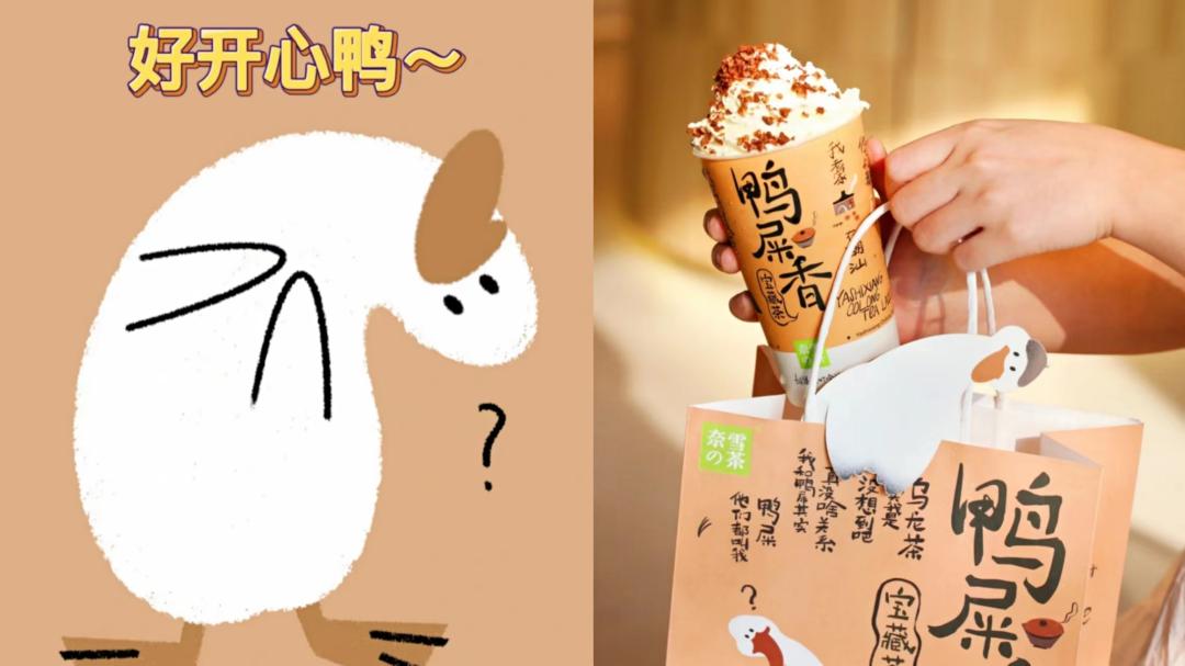 奈雪曾在鸭屎香上新时,用“鸭”做文章。在小红书放出表情包时,分享了一系列“鸭鸭文学”,比如“你瞅啥鸭”、“好开心鸭”。