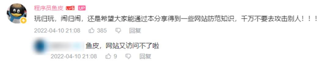 而鱼皮的目的也是为了给大伙提个醒,真等到自己建立网站的时候,能长点记性,做好安全保护措施。
