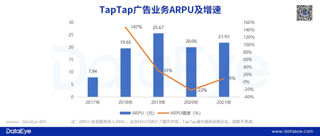 注:ARPU=信息服务收入/MAU ,此处MAU只统计了国内市场,TapTap海外版尚未商业化,故暂不考虑。