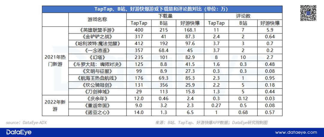 ②热门游戏:TapTap分发能力远超B站和好游快爆
