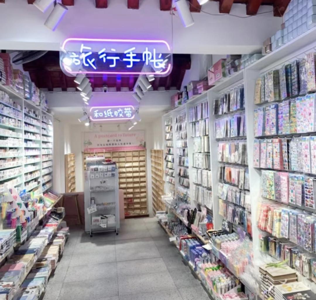 这也是几十年来文具消费迭代的缩影,从实用性到观赏性,再到趣味性。 随着一代又一代学生们的可支配资金增加,文具消费的可能性也在延展。传统文具店逐渐转型,增加更多的文具盲盒盲袋、卡牌、玩具等潮流小商品,手帐消费就是与新一代文具店相辅相成的热门产业。