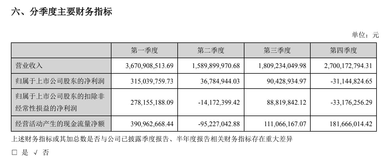 三只松鼠2021年四个季度主要财务指标,图片来自深交所