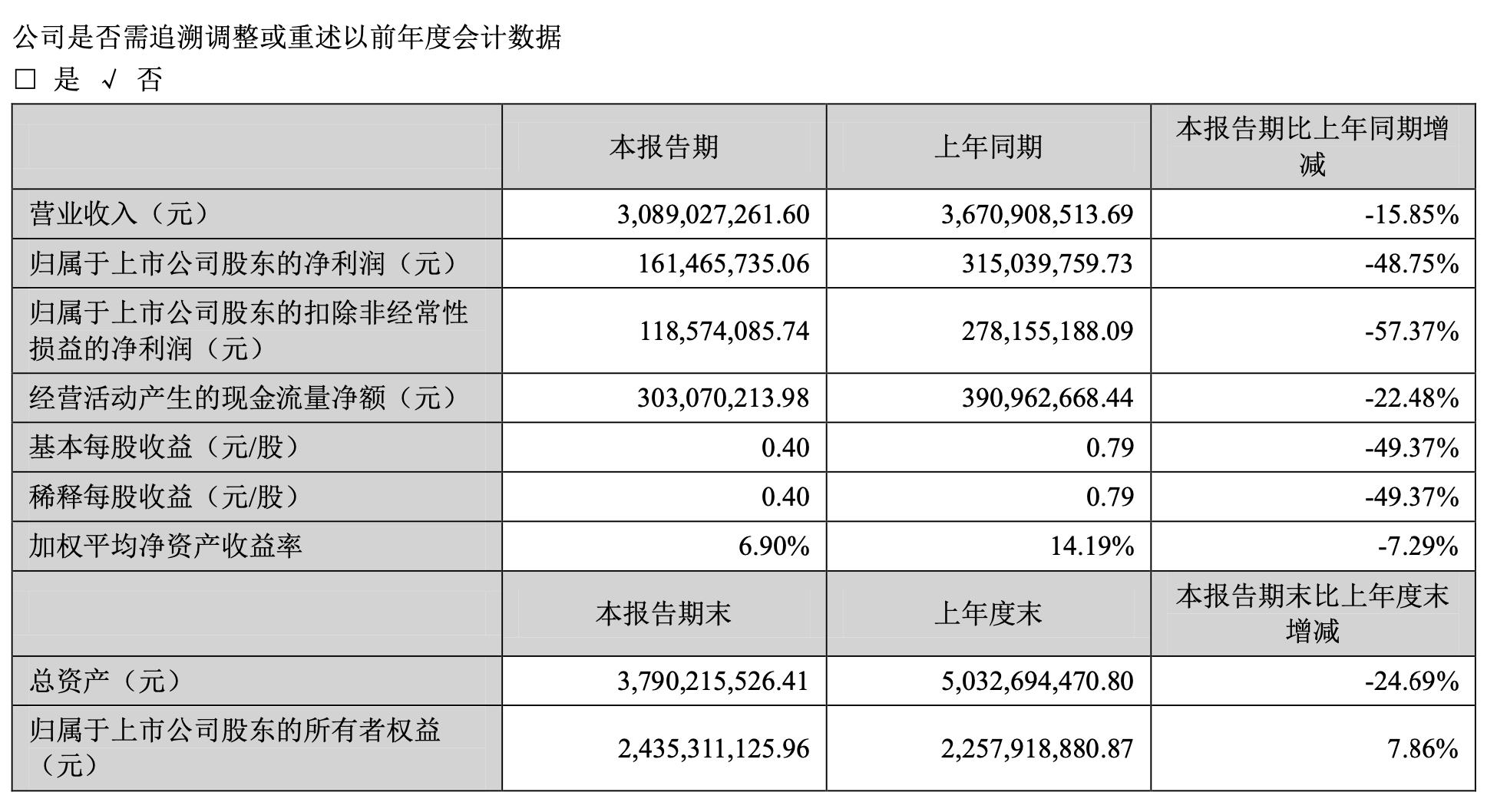 三只松鼠2022年Q1财务数据,图片来自深交所
