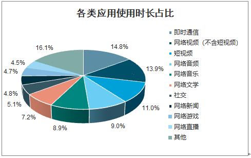 CNNIC数据显示,截至2019年12月,手机网民使用的APP中,即时通信类产品的使用时间最长,占比为14.8%,网络视频和短视频紧随其后,分别为13.9%和11.0%。
