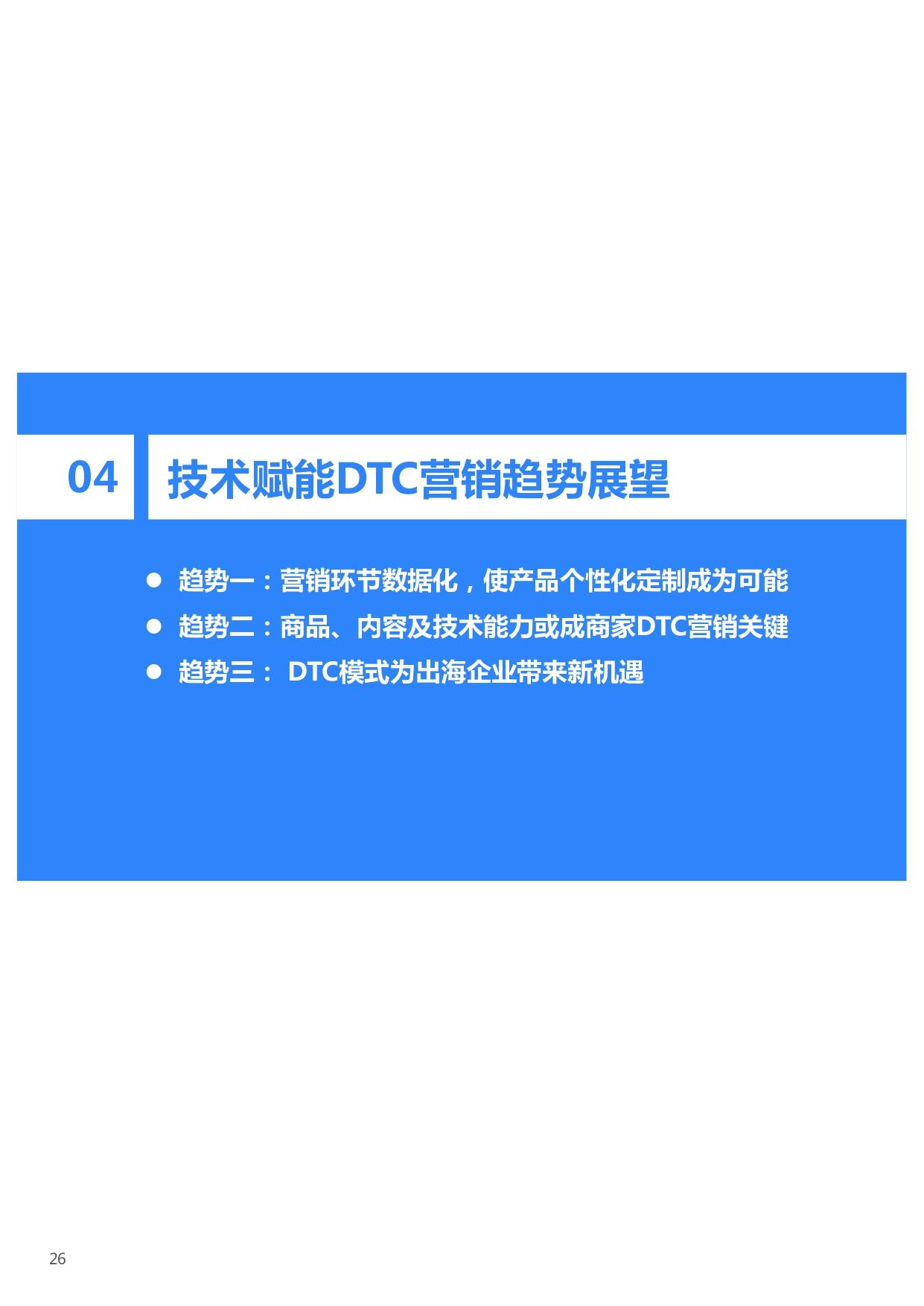 在技术不断发展的背景下,DTC营销各环节均有望实现数据化,赋能商家经营决策的同时,推动商品向个性化及定制化方向发展。随着DTC营销模式渗透率的不断提升,商家需从商品、营销内容及数据技术三方面发力,实现低成本及高效率的获客及流量转化,打造DTC营销时代的核心竞争力。