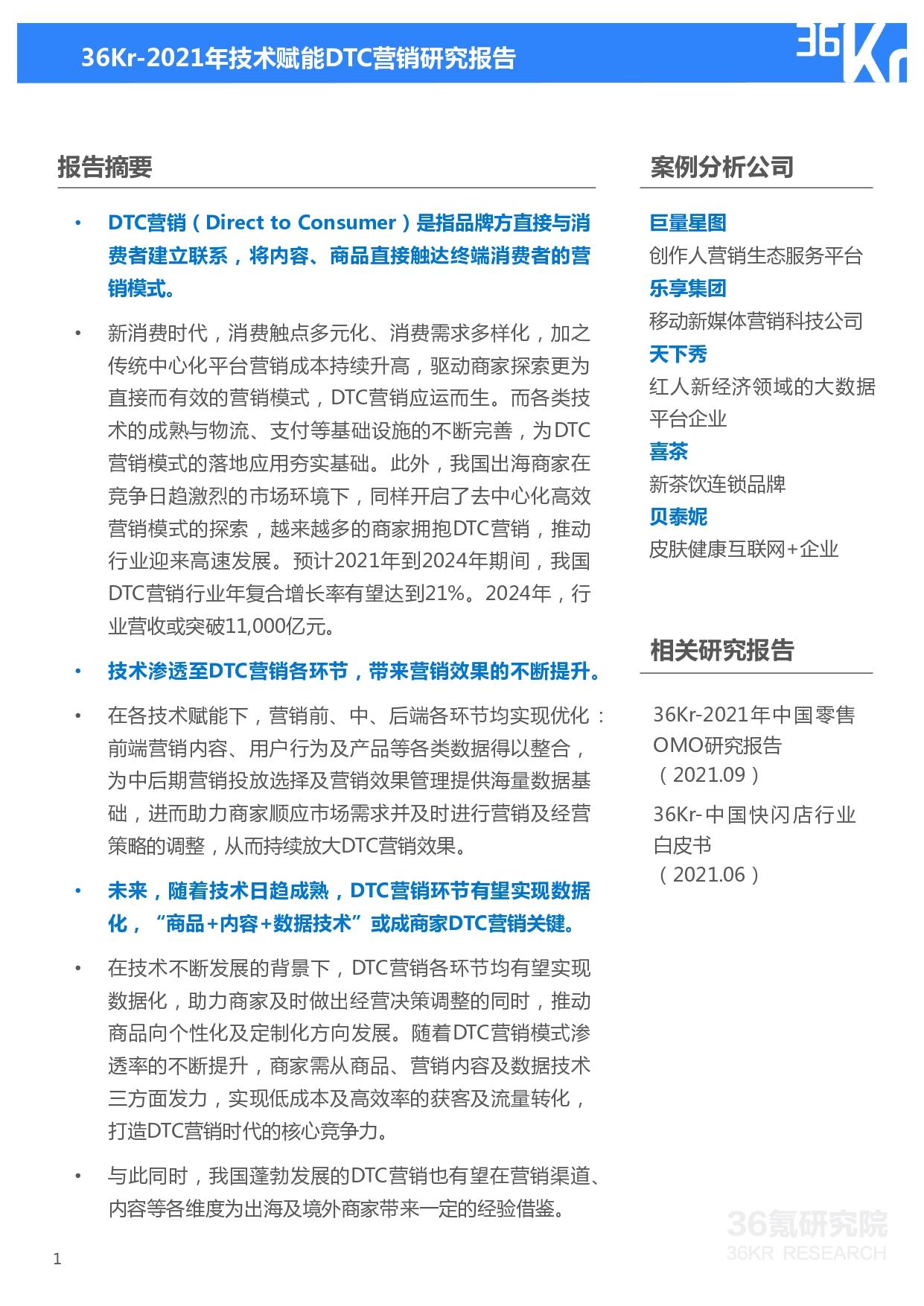 36氪研究院 | 2022年技术赋能DTC营销研究报告