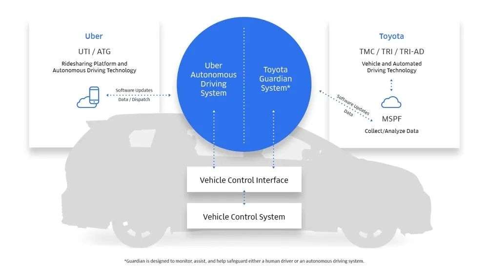 2018年8月,丰田向Uber投资5亿美元(约合32亿元人民币),并且在自动驾驶领域扩大合作。双方在合作之中,Uber使用丰田赛那MPV打造L4级自动驾驶车辆,并且集成Uber和丰田各自的自动驾驶算法控制车辆。