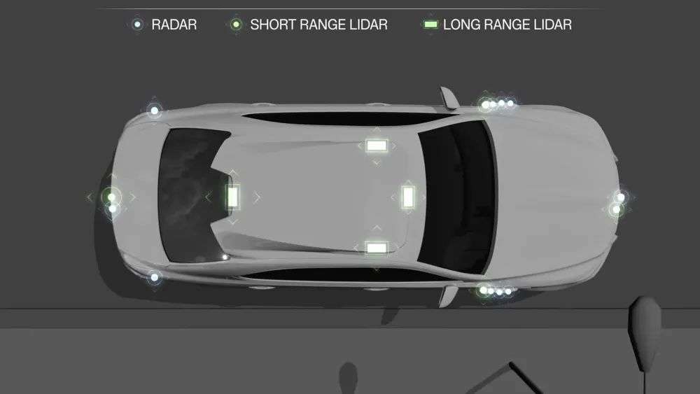 可以看到Platform 3.0在前后以及左右侧翼子板上各有一颗短距离激光雷达,车顶有4个长距离激光雷达以及8个毫米波雷达,和现在的4激光雷达量产产品有比较高的相似度。